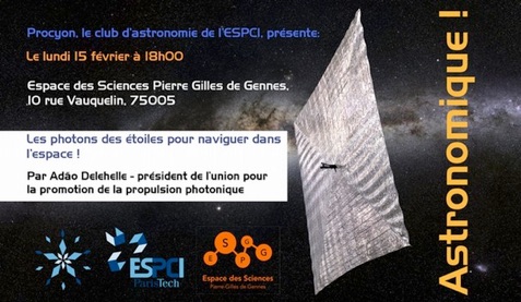 Dans ce paysages riche en activités, l’U3P continue sa mission de promotion de la propulsion photonique auprès du public, des étudiants et des jeunes. Cette année 2016 a d’ailleurs été une bonne année pour l’U3P puisque l’association a organisé un nombre très honorable de conférences en France : à l’Ecole Supérieure de Physique et de Chimie Industrielles auprès des étudiants et enseignants, à Pampelone auprès des petites classes du Tarn et l’Aéro-Club de France auprès d’un public averti.