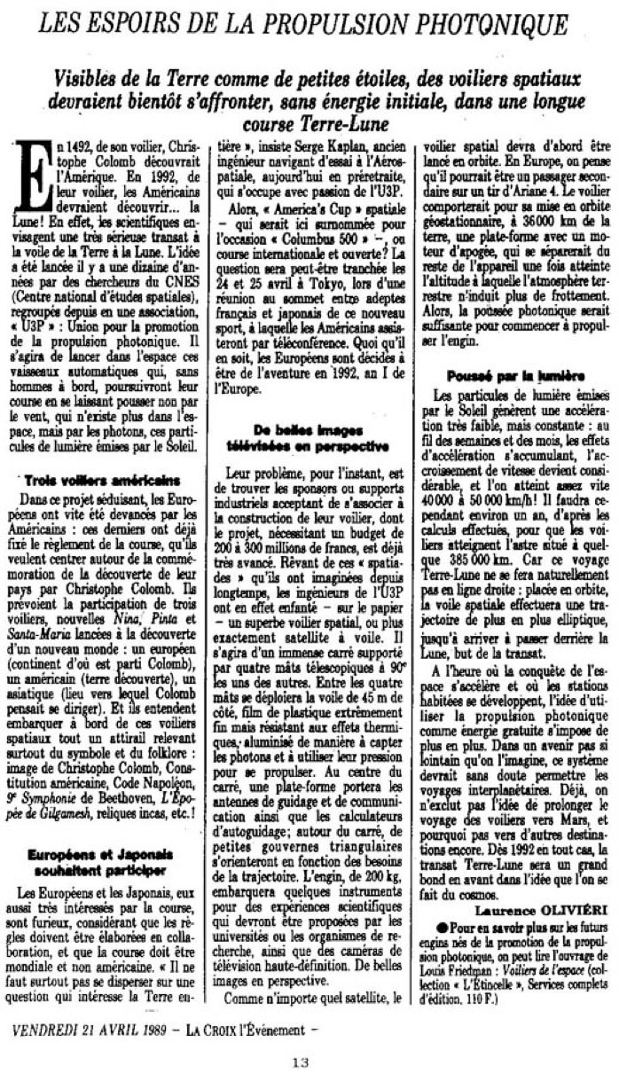 La Croix – l’Événement – 21 avril 1989